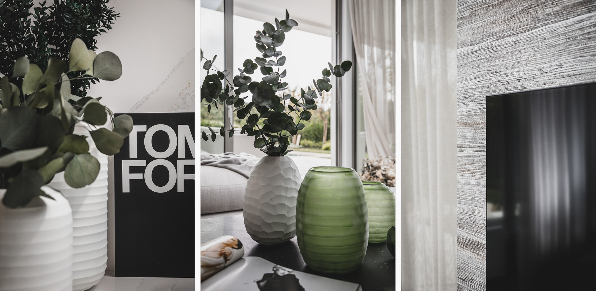 The south-southwest facing villas are spread over three floors and feature spacious and bright rooms that offer between 383 and 522 square meters of living space for maximum comfort in a relaxed environment that is a pleasure to be in. The open concept of the first floor seamlessly and practically connects the living and dining areas with the kitchen to create different environments for cooking, dining and relaxing. The ultra-modern kitchen with central cooking island is fully equipped with high-quality German-made appliances. One to three bedrooms with en-suite bathrooms are also located on this floor.