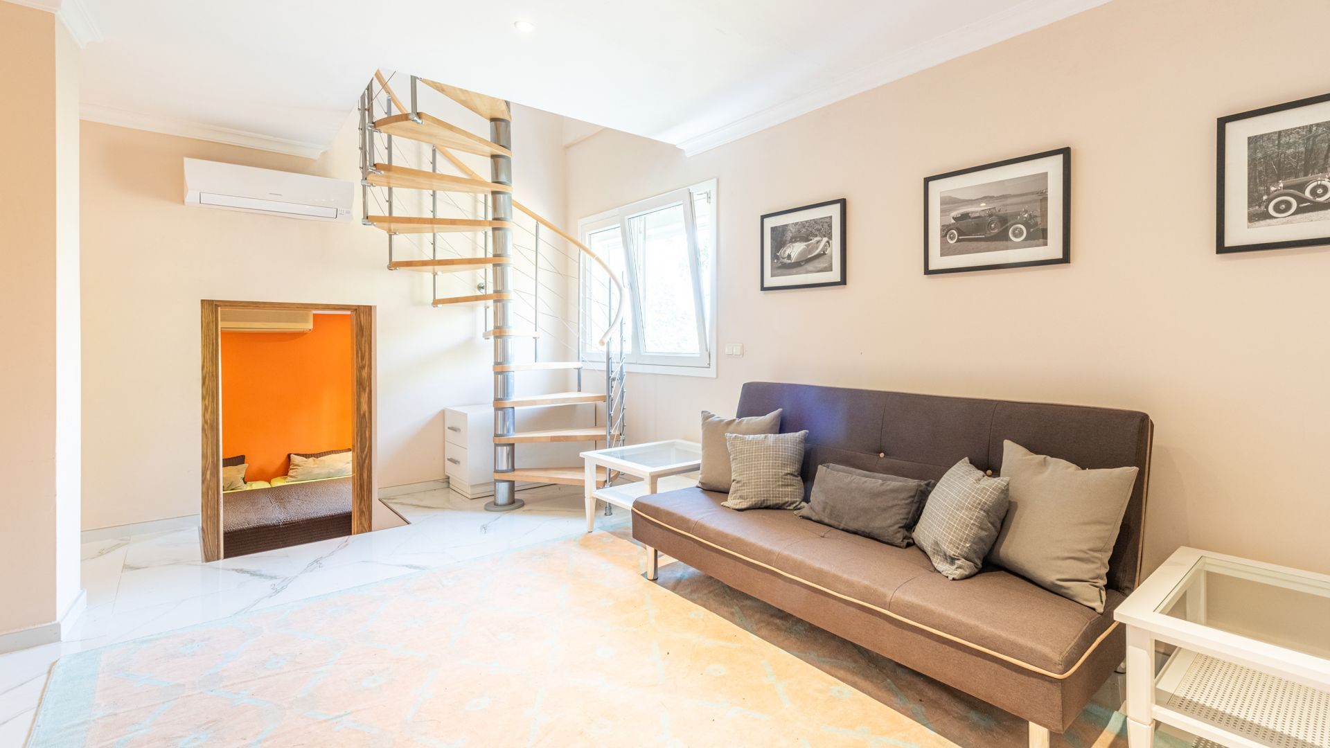 A separate guest apartment can be accessed from the inside via a spiral staircase or directly from the outside via a separate entrance. The guest apartment has a living room with an open-plan modern kitchen, 1 bedroom and a bathroom.