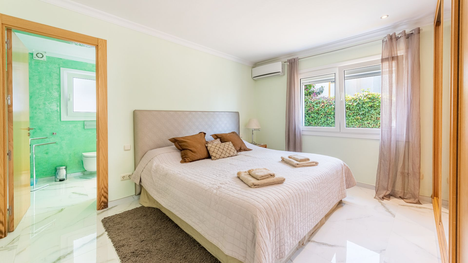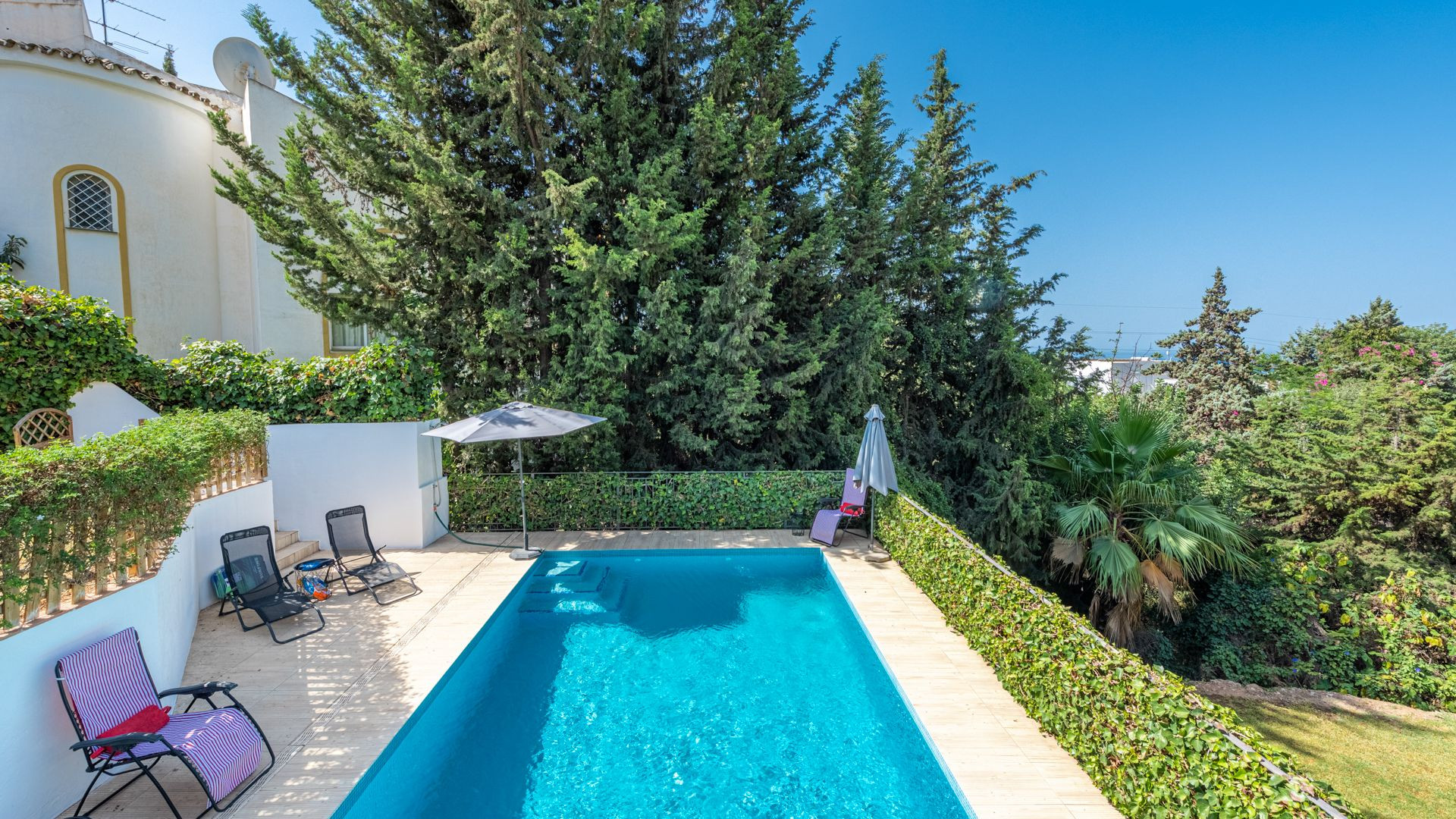 The villa is located in El Rosario in a quiet side street and offers breathtaking sea and mountain views and is only a few minutes away from the center of Marbella.