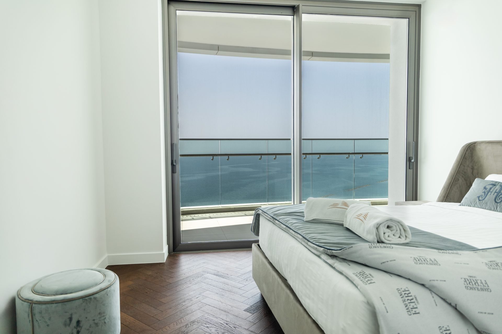 is a Seafront apartment that enjoys breathtaking views of the Mediterranean Sea at every angle. Being part of Limassol Del Mar, it expresses the island’s ‘new wave’ of architecture through its unique high-rise curvilinear design, which fully capitalises on the plot’s 170 metres long sea frontage.