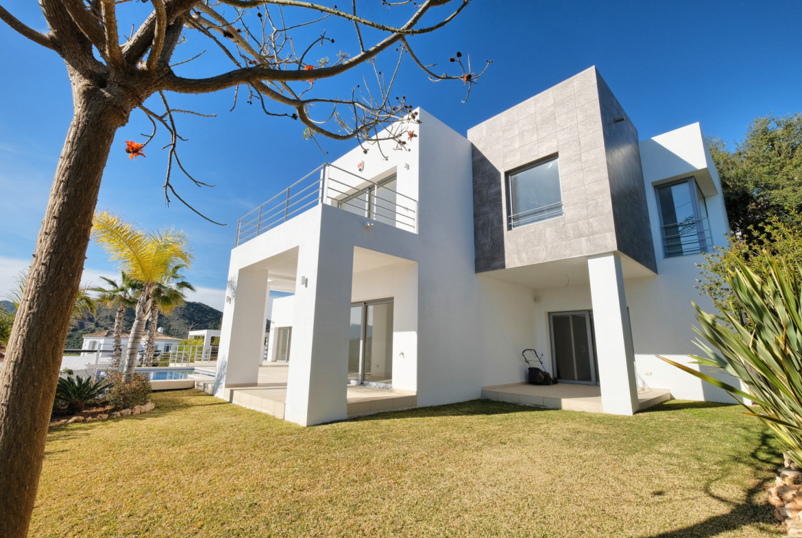 Entdecken Sie eine außergewöhnliche, neu erbaute Villa in der ruhigen Gegend von Puerto del Capitán, die für Qualität und Komfort konzipiert ist. Nach Westen ausgerichtet, fängt diese Villa die Wärme der Nachmittags- und Abendsonne ein und bietet einen privaten und friedlichen Rückzugsort mit faszinierenden Ausblicken auf die Berge.