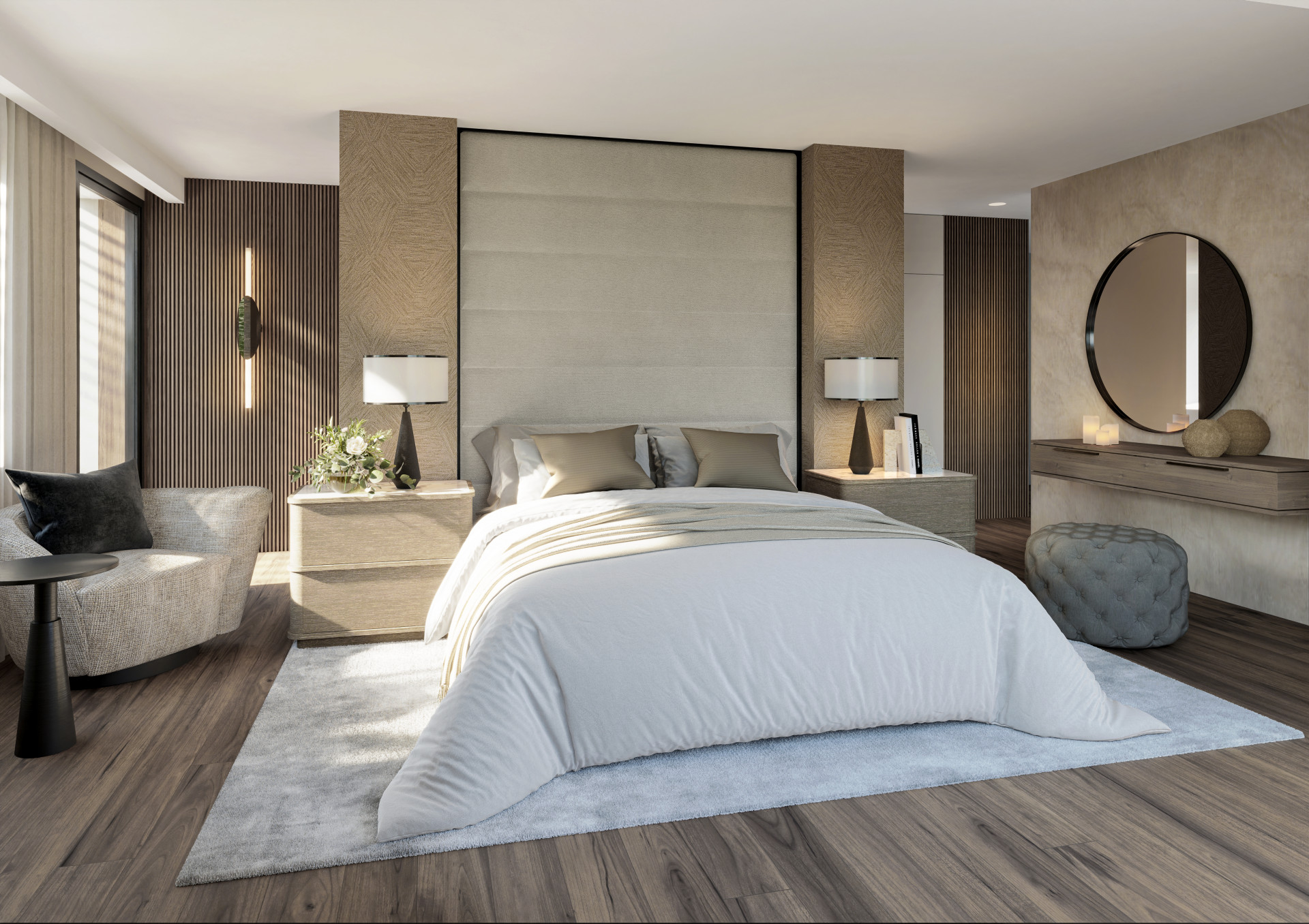 Die Villa verfügt über 4 geräumige Schlafzimmer, die jeweils mit Komfort und Stil gestaltet wurden. Diese Räume bieten reichlich Platz zum Entspannen und Personalisieren. Es gibt 4 wunderschön ausgestattete Badezimmer mit hochwertigen Armaturen und Oberflächen sowie ein Gästebad für zusätzlichen Komfort.