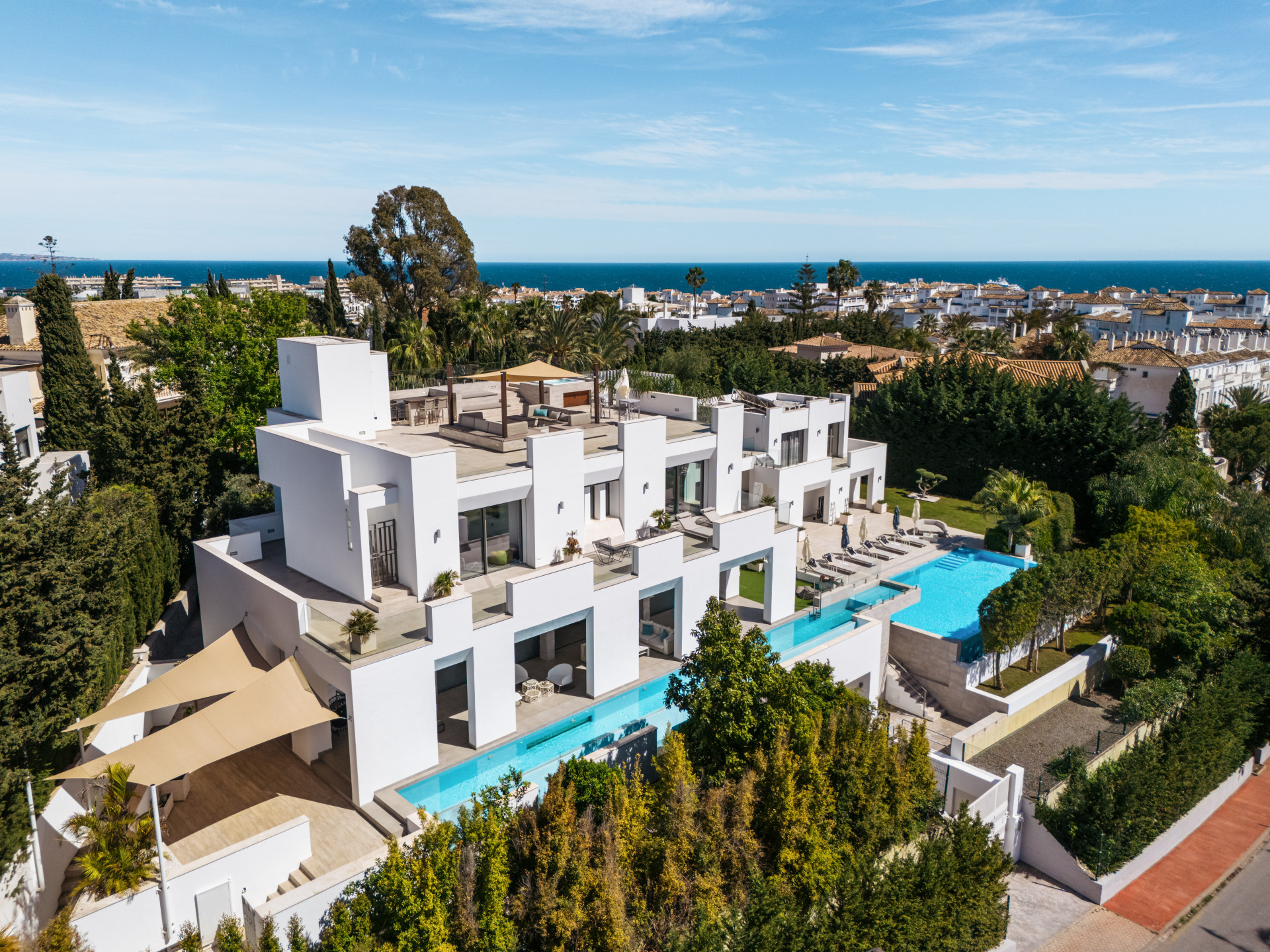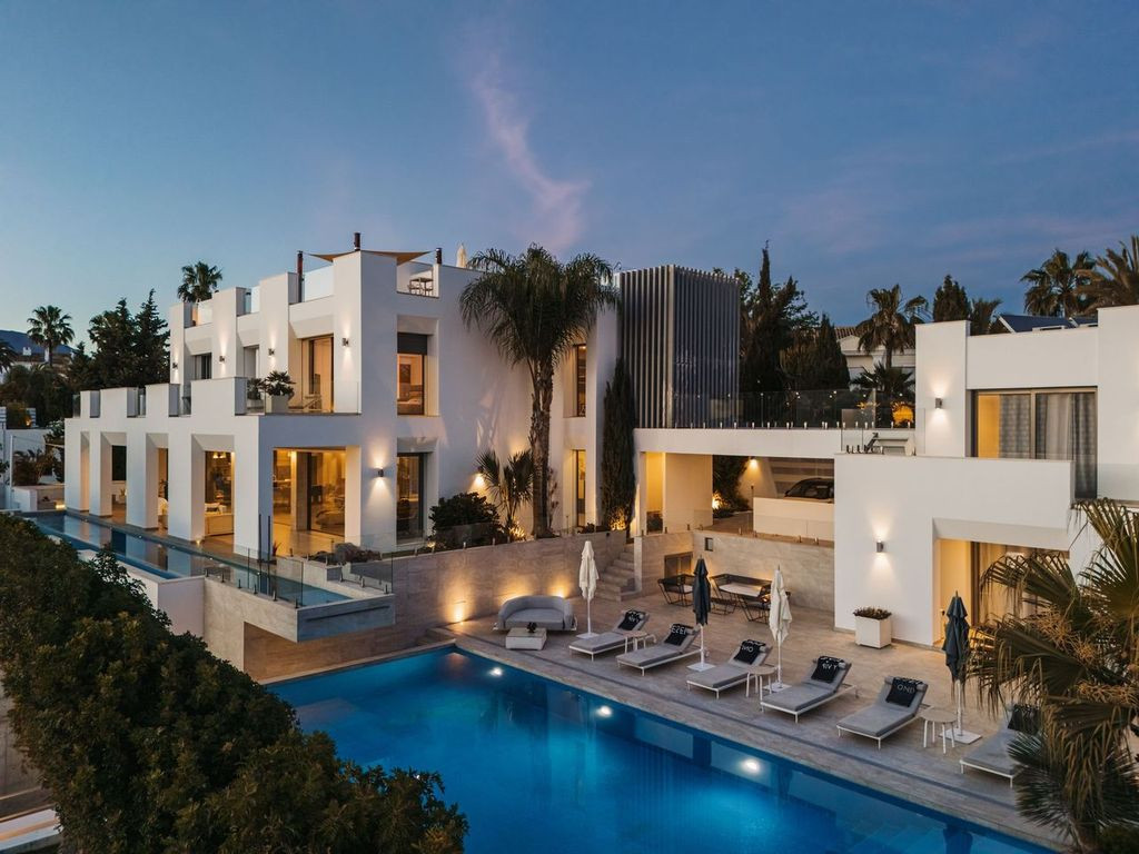 Diese prächtige Villa verfügt über 11 ruhige Schlafzimmer und 6 hervorragende Badezimmer, die mit luxuriösen ovalen, freistehenden Badewannen, thermostatischen Duschen sowie Waschbecken und Waschtischen für Sie und Ihn ausgestattet sind – perfekt für ein modernes Zuhause. Der offene Wohnbereich integriert nahtlos eine Lounge, einen gemütlichen Kaminsalon, der ideal für Filmabende oder zum Lesen ist, formelle und informelle Essbereiche, eine stilvolle Bar und eine erstklassige, voll ausgestattete Küche mit hochwertigen Geräten. Die großzügigen Wohn-, Ess- und Unterhaltungsbereiche gehen in überdachte und sonnige Terrassen über, die sich über 533 m² erstrecken, in angelegte Gärten, Lounges im Freien, ein Solarium und Essbereiche im Freien, die zum Entspannen, zu Yoga-Sitzungen und zum Genießen der mediterranen Sonnenuntergänge einladen. Zu den besonderen Merkmalen gehören ein beeindruckender Infinity-Pool mit kaskadenartigen Wasserspielen und ein hochmodernes Fitnessstudio im Untergeschoss mit Blick auf den Pool, das an eine Szene aus einem James-Bond-Film erinnert. Die Immobilie ist umweltfreundlich und energieeffizient und verfügt unter anderem über ein Hausautomatisierungssystem, eine Fußbodenheizung, eine Klimaanlage, einen Aufzug, doppelt verglaste Fenster, Einbauschränke, ein Ankleidezimmer mit Unterbeleuchtung und Spiegelwänden, einen Whirlpool, eine Sauna, eine Garage für vier Autos und zusätzliche Parkplätze im Freien.