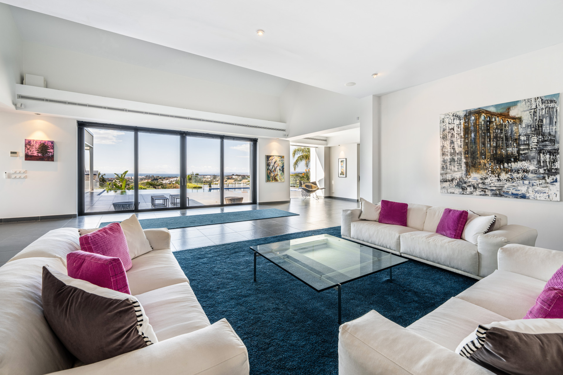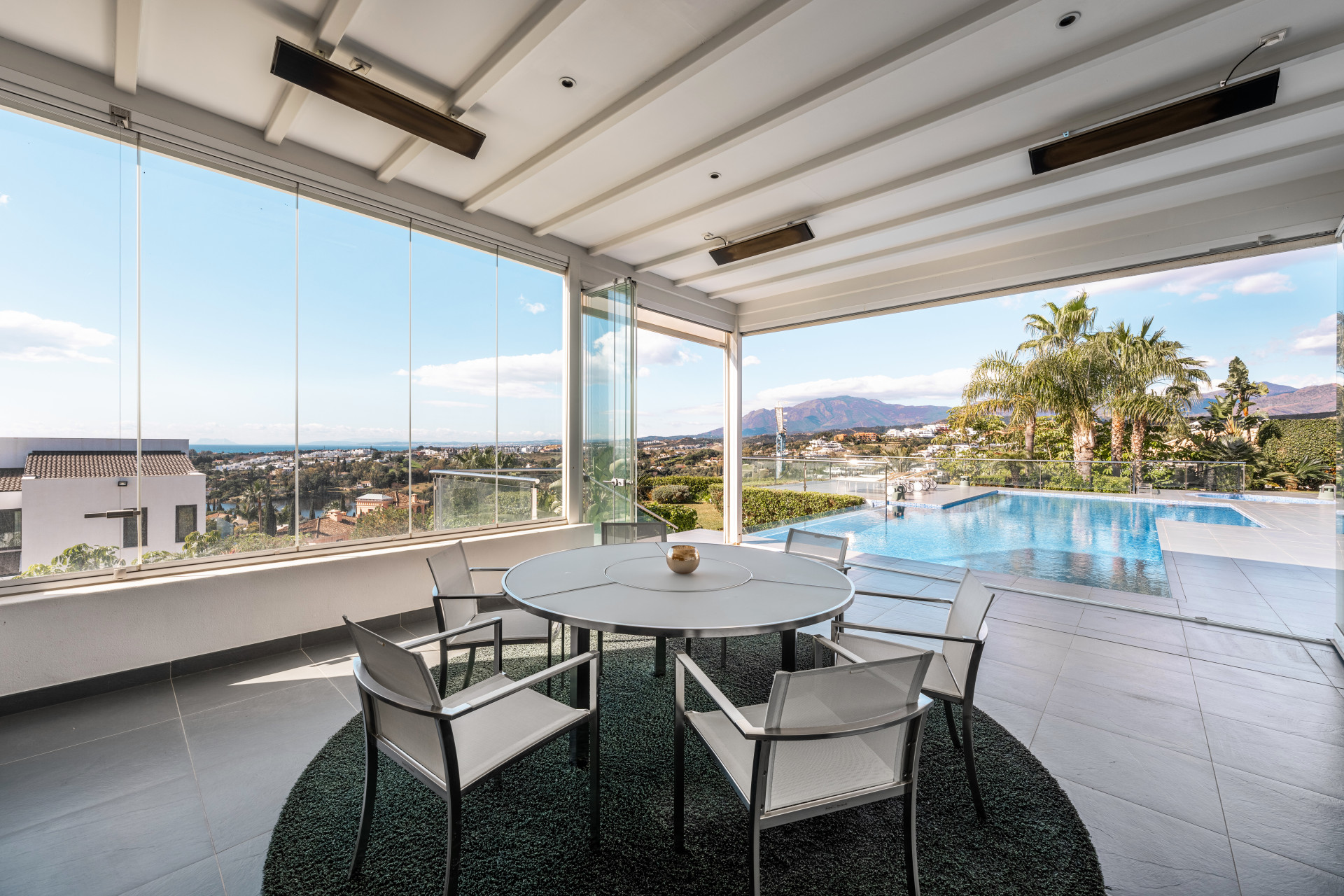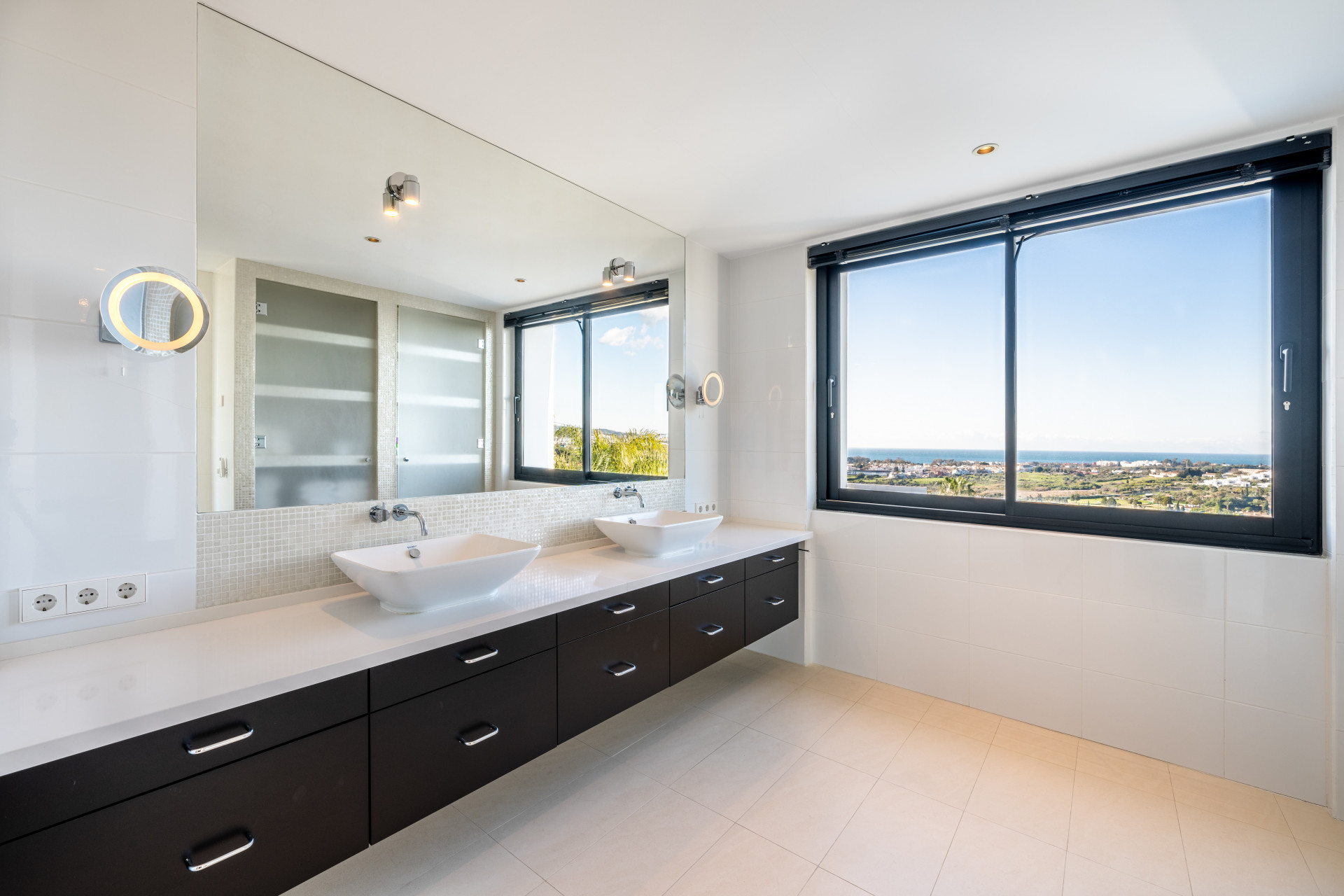 Die Villa liegt in einem ruhigen Tal mit herrlichem Blick auf die Küste, den Felsen von Gibraltar und Nordafrika sowie malerischen Ausblicken auf Golfplätze, einen natürlichen See und Berge.
